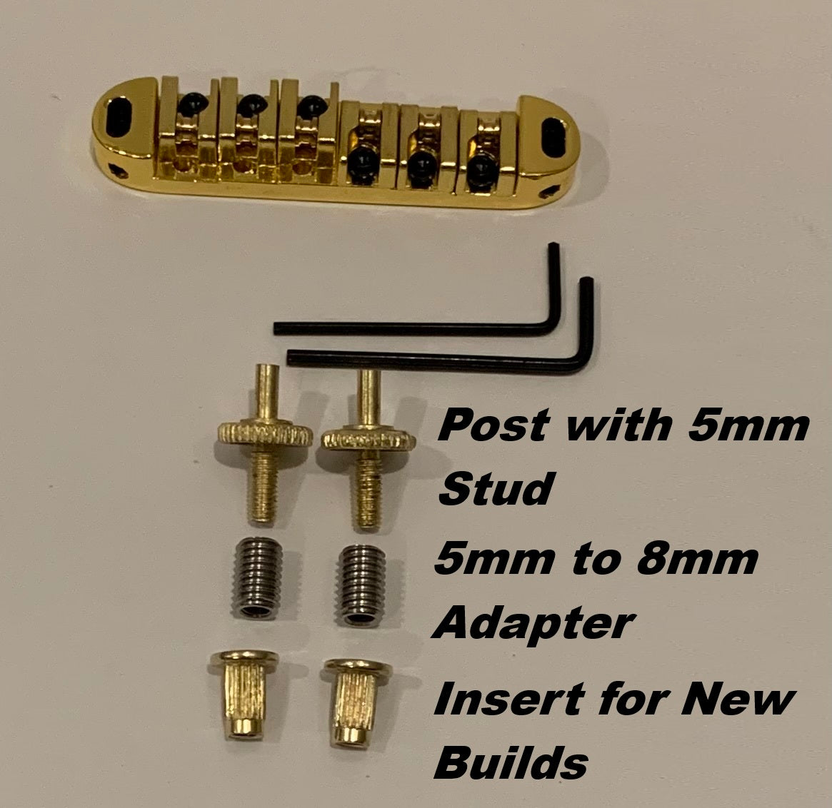 Roller Bridge mounts to existing 5mm inserts or 8mm inserts using included 5mm to 8mm adapters or the included inserts for new builds. Adjustment wrenches included.